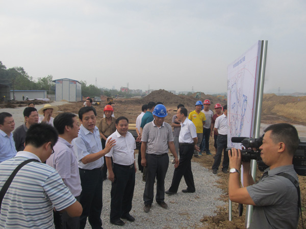 萍乡市市长李小豹一行在施工现场听取情况汇报