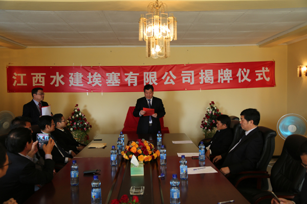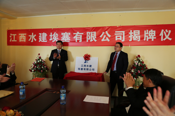 2015年4月26日埃塞当地时间上午10点,江西水建埃塞有限公司在埃塞举行揭牌仪式。公司董事长王元旦、总经理徐洪良、副总经理兼海外公司执行董事张周平、副总经理兼海外公司总经理黄郑民、副总经理王俊华等领导及在埃员工参加了揭牌仪式,公司董事长王元旦和埃塞有限公司总经理王毓平共同为埃塞公司揭牌并致辞。