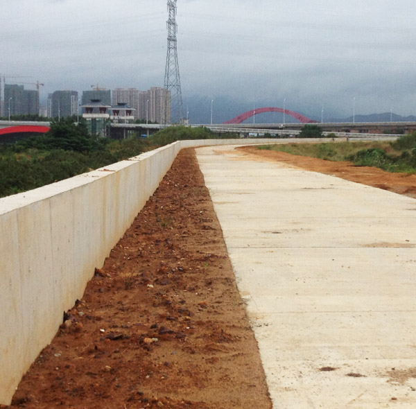 浇筑好的堤顶公路、防浪墙