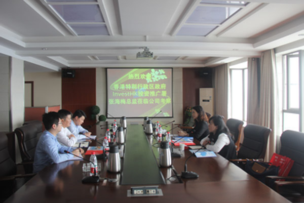 2016年5月23日,香港特别行政区投资推广署张海梅总监、陈铭夏经理来到我司就香港业务的开展进行调研和指导,公司副总经理兼海外公司执行董事张周平、总经理助理肖凯等相关人员参加座谈会。