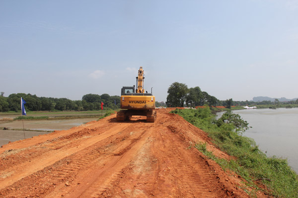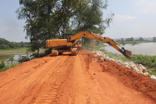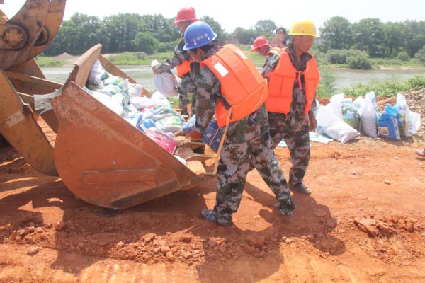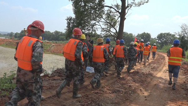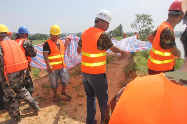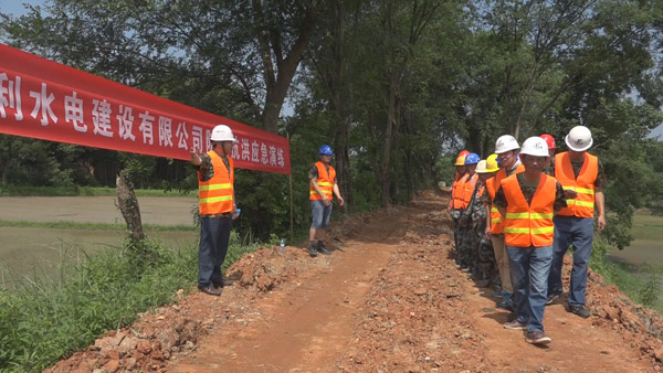 本次演练是以贵溪市新田联圩防洪工程施工项目所在地连日持续大雨天气,引发罗塘河河水暴涨,导致桩号K10+247~K11+000段大堤出现塌方、开裂现象,启动防汛应急预案为背景,开展的防汛演练。演练科目包括:险情报告、启动应急预案,组织应急救援队伍投入抢险,堤脚抛石固脚、堤身砂卵石及土方填筑、堤身迎水面铺设防冲彩条布、编织袋装砂石堤身加固等内容。演习完成后,参与演习的主要成员,对本次演习效果进行了评价,为公司《防汛应急预案》的修订完善作了充分的基础工作。