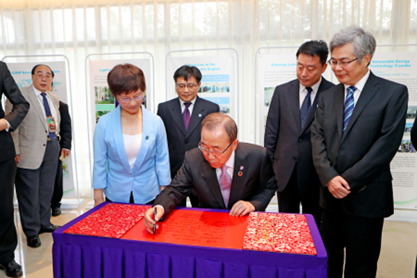 7月9日上午,联合国秘书长潘基文出席了由联合国开发计划署、联合国工发组织、国际小水电中心共同举办的“应对气候变化南南合作主题会”,并发表重要讲话,会议在国际小水电中心举行。联合国副秘书长吴红波、中国驻联合国代表刘结一大使等陪同出席。