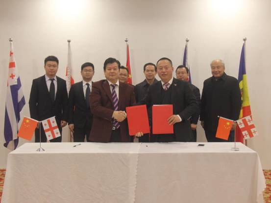 12月15日,公司董事长王元旦、海外公司总经理黄郑民一行与格鲁吉亚丝绸之路合作有限公司董事长刘济民在江西中格文化交流中心举行格鲁吉亚市场全面合作协议签约仪式。