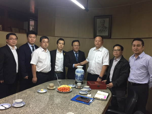 海外公司黄郑民一行先是认真听取了泰国有限公司负责人谢盛对泰国有限公司注册成立以来所取得的成绩及发展过程中所遇到的困难,海外公司总经理黄郑民听后表达了对泰国有限公司发展的关心,并为泰国公司的发展提出了一些指导意见及建议。